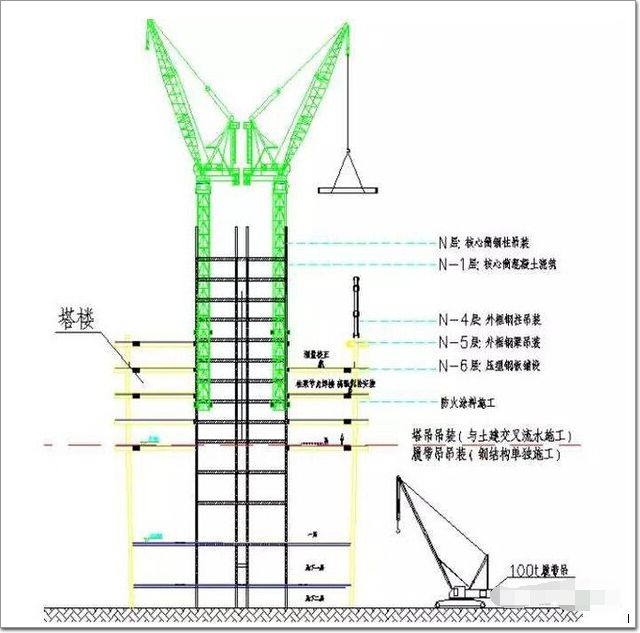 超高層施工主要施工設備主要包含大噸位自升式塔吊、大尺寸高速施工電梯、液壓模架系統、超高泵送設備系統,設備的布置與選型的科學性是超高層建筑施工的關鍵。
