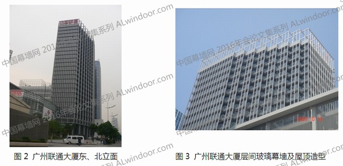 我國(guó)正在編制的國(guó)家標(biāo)準(zhǔn)《建筑幕墻術(shù)語(yǔ)》,將這種窗墻window wall定義為窗式幕墻window type glass curtain wall——安裝在樓板之間或樓板和屋頂之間的金屬框架支承玻璃幕墻,是層間玻璃幕墻的常用形式。圖2 、圖3所示的廣州聯(lián)通大廈層間隱框玻璃幕墻,就是這種窗式幕墻。