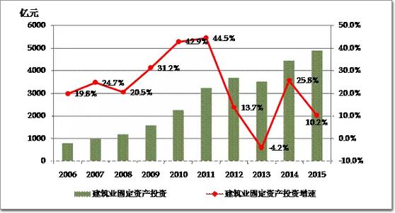 圖4 2006-2015年建筑業固定資產投資及增速