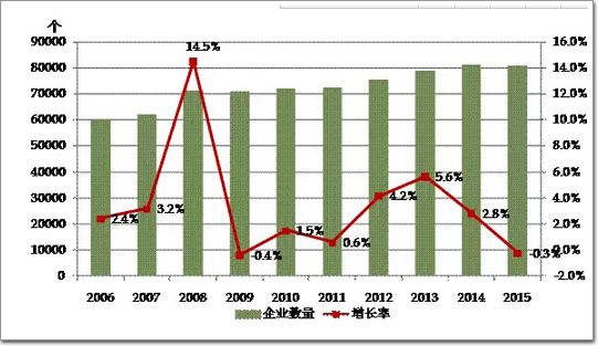 2015年,全國建筑業企業實現利潤6508億元,比上年增加101億元,增幅為1.57%,比上年減少13.35個百分點(圖9)。