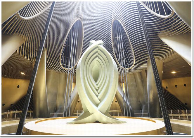 為了降低大風造成的大樓搖擺,現代化摩天大樓都會安裝阻尼器!吧虾V行摹钡淖枘崞鲃撛煨缘乩谩半姶旁怼,節省了400多平方米的空間。這樣,阻尼器所在的580多米高的頂層,便有了觀光空間。在這個被稱為“上;垩邸钡脑贫,今后海內外頂尖藝術家將舉辦小型演出和藝術品展,讓人體驗“天人合一”之感。