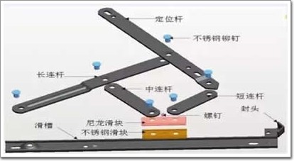 滑撐則是應用于外平開窗和幕墻外懸窗。因窗戶往外開、更要考慮扇的高度、寬度和重量等承重要求,選用相應承重級別的滑撐。