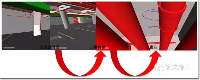 三維施工審查較碰撞檢查需要人工對BIM模型進行校審,可利用測量工具和批注工具對施工圖發現的問題進行標注。