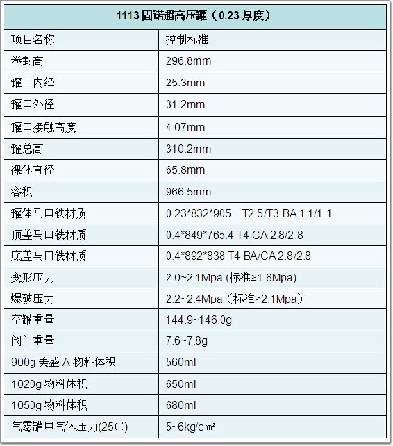 1113固諾超高壓罐參數表