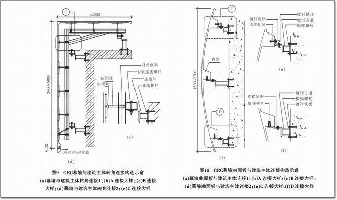 GRC幕墻與建筑主體轉角連接構造如圖9所示.