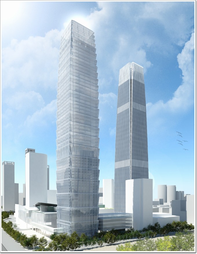 北京國(guó)貿(mào)三期整體效果圖 A座(左),B座(右)