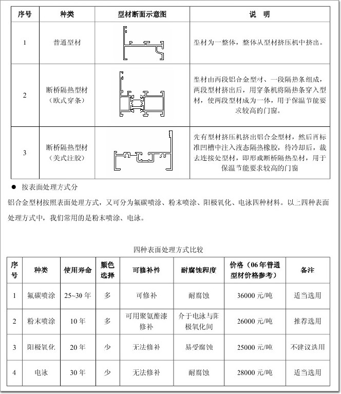 鋁合金型材是鋁合金門窗最主要的組成部分,在市場上較為知名的品牌有興發、鳳鋁、亞鋁、廣亞、華加日等多個型材品牌。經比較,考慮型材質量、供貨及時性、配合意識等多方面因素,我們常用的品牌為佛山南海廣亞型材,其綜合實力最為符合萬科要求。