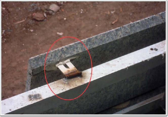 不合格表現:1、選用不銹鋼掛件與石材槽口插入面積較小,易出現應力集中導致石材槽口崩裂;