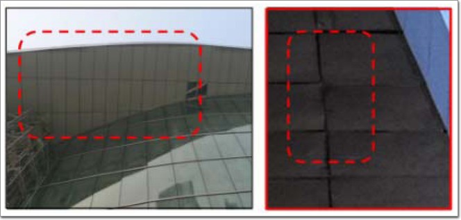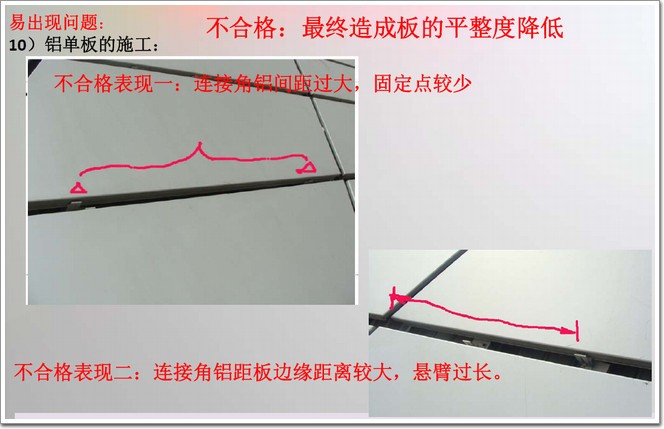 不合格表現一:鋁板分縫不順直,有較大傾斜,平整度不合格。