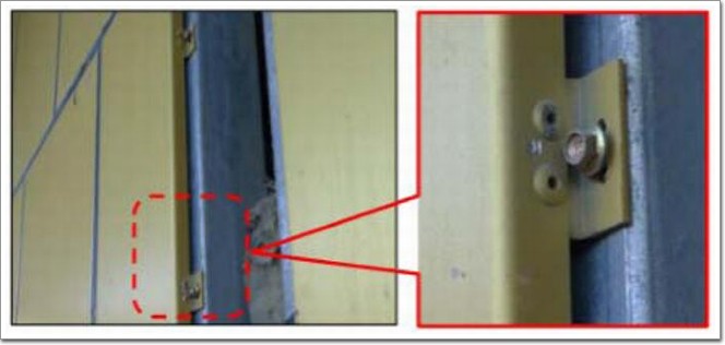 不合格表現:鋁單板連接耳板與鋼龍骨間為設置防腐墊片