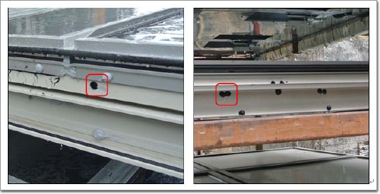 不合格表現:單元板塊豎向龍骨上加工時的工藝孔未封堵,存在滲漏隱患。