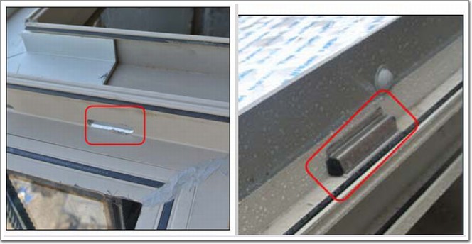 不合格表現:排水孔被封口鋁板擋住,無法有效排水。