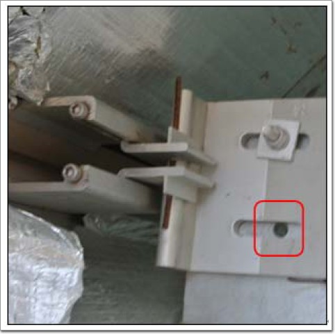 不合格表現:單元板塊轉接件與埋件的連接螺栓缺失,影響幕墻受力,存在安全隱患。