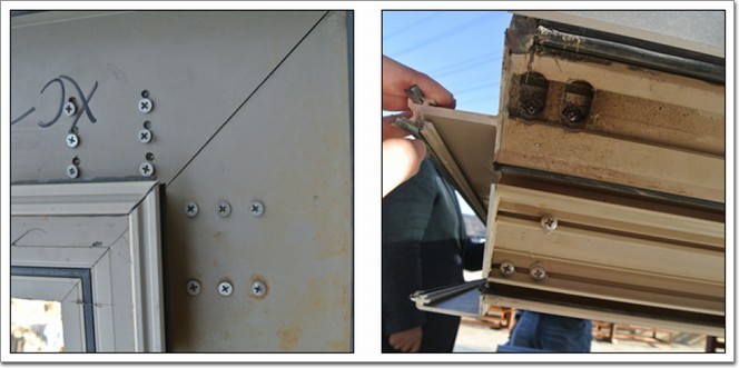不合格表現:單元板塊外露的螺釘均要帶膠緊固,防止雨水從釘孔位置滲入。