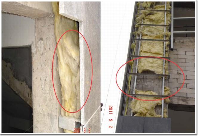 不合格表現:石材背面無任何保溫措施,不符合節能要求。