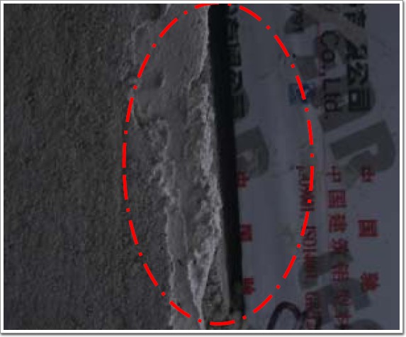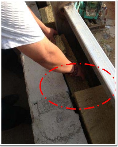不合格表現:排水槽內有砂漿(詞條“砂漿”由行業大百科提供)殘留。兩側排水通道極易堵塞,造成排水系統失效。