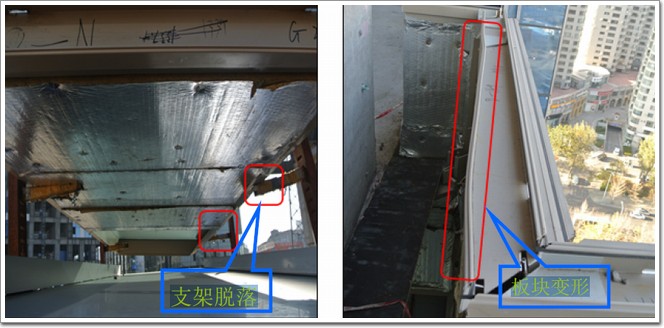 不合格表現:運輸過程中保護不到位,板塊與支架不符,發生晃動與撞擊。造成單元板塊變形或組框角部的撕裂支架脫落板塊變形。