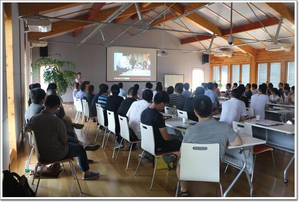 主講嘉賓上海朗綠建筑科技有限公司被動房研究所所長汪靜在基地的會議培訓樓為來賓分享了朗詩地產(chǎn)綠色建筑的設計理念及布魯克被動房的設計施工。