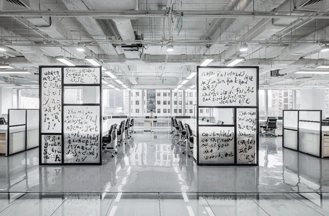 設(shè)計師于是用宣紙玻璃一層層地根據(jù)功能把辦公室分割成不同部分,宣紙玻璃事實上更進一步消解整個空間的體積,對設(shè)計師而言,宣紙玻璃就是屏風(fēng),在視覺上。一層層的它地把公司不同功能和部門(詞條“門”由行業(yè)大百科提供)碾平在不同層次的半透明的界面上,不同層次的活動在最前景合成一個二維的畫面,這三維的世界失去真實的時候,時間這個奇妙神奇但喜怒無常的野獸就好像被暫時困住了,結(jié)果呼應(yīng)了中國古人在繪畫和詩歌上的審美。