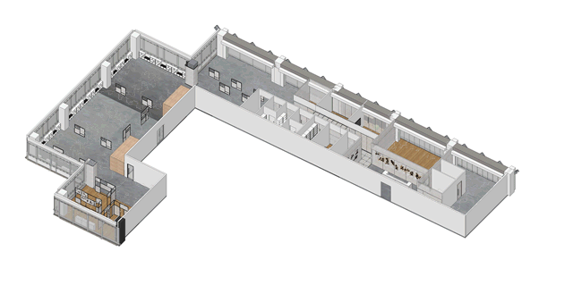 設(shè)計師習(xí)慣把任何建筑和室內(nèi)設(shè)計看成一個世界的重構(gòu),原本試圖在這個740平米的空間中創(chuàng)造一種雖在室內(nèi)但宛如置身園林的場景。不過公司負責(zé)人是個居住北京多年的北歐人,盡管對中國藝術(shù)有一定研究,但更傾向一種極簡主義的表達。