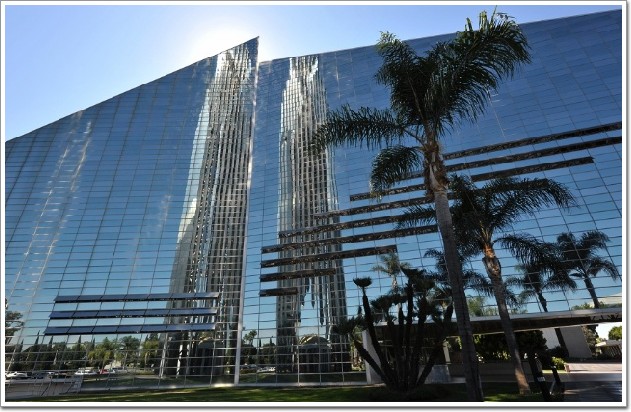 洛杉磯水晶大教堂玻璃品質極高,映射出的克林塔沒有一絲變形