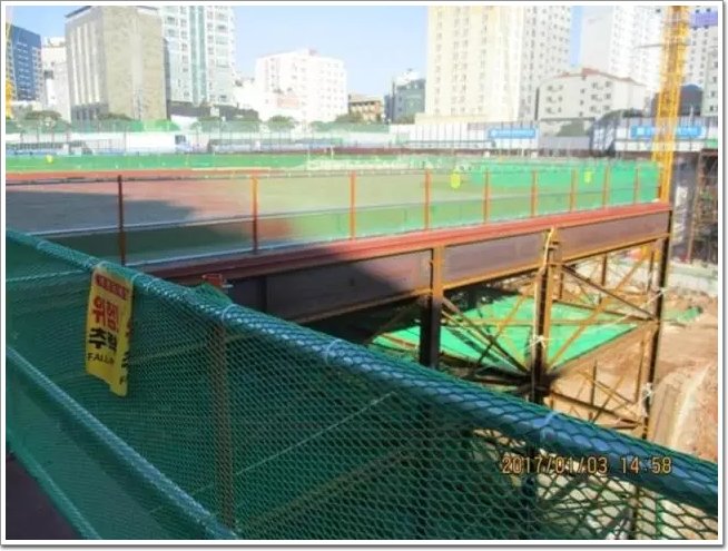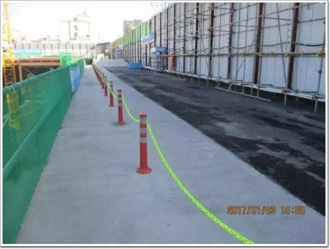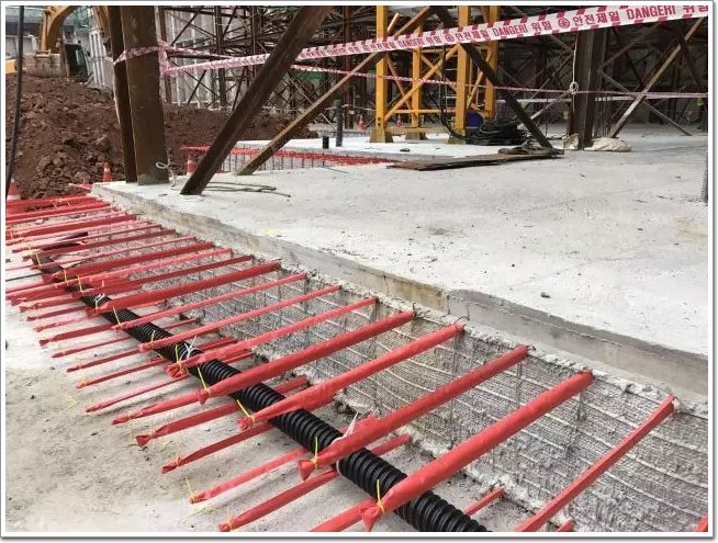 現場的鋼筋保護使用醒目的顏色防止人員誤撞