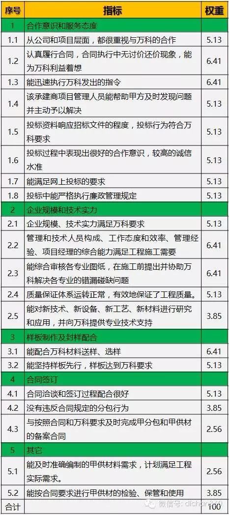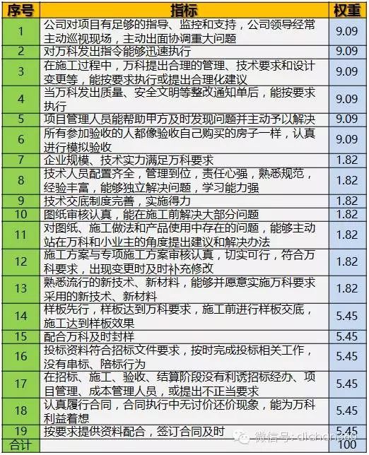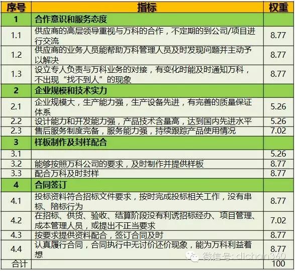 二.萬科供方分項(xiàng)評(píng)估指標(biāo)及權(quán)重