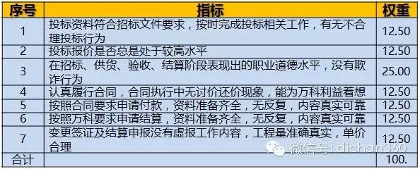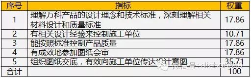 工程管理部需要評(píng)估的分項(xiàng)指標(biāo)及權(quán)重如下表