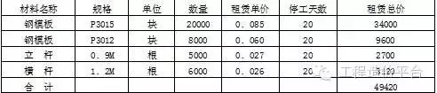 (2)停工期間周轉(zhuǎn)材料的租賃費(fèi)。施工單位有不少周轉(zhuǎn)材料是向租賃單位租來(lái)的,停工期間的材料租賃費(fèi)對(duì)施工單位的損失很大,一定要詳細(xì)計(jì)算。為計(jì)算清楚,可列表計(jì)算。如下表:(以模板等周轉(zhuǎn)材料為例)