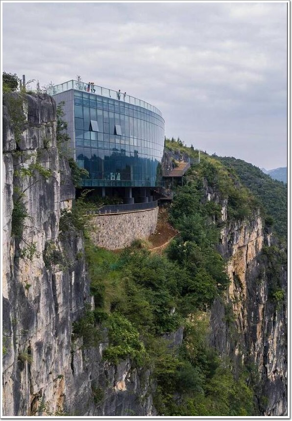 溶巖美術館位于貴州省黔西南布依族苗族自治州安龍縣篤山鎮,這個“懸浮”于165米絕壁上的美術館!在歷經現實的磨練之后,有智慧的設計終將走向人們的內心。原本一座平凡的美術館,因其它處于特殊的絕壁之上而變得極為不平凡。