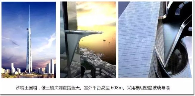 目前正在施工的沙特阿拉伯王國塔,預(yù)設(shè)高度是突破1000m大限,達(dá)到1007m,建成后將替代迪拜哈利法塔成為世界第一高塔!該塔為228層的綜合性建筑,在608m高度上設(shè)有面積為600m2的室外觀光平臺(tái)。