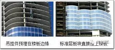樓板為300mm 厚混凝土板,單元板塊吊掛件埋在樓板邊緣。標(biāo)準(zhǔn)樓層層高3.2m,板塊直接連接在預(yù)埋掛件上。設(shè)備層層高較高,后面另加鋁型材立柱。