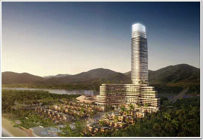三亞財(cái)經(jīng)國(guó)際論壇中心位于海南三亞國(guó)家海岸海棠灣,總建筑面積187480平方米,包括論壇永久會(huì)址、五星級(jí)酒店及服務(wù)式公寓、游客接待中心及延伸服務(wù)區(qū),主塔酒店公寓樓高度為211米,為三亞目前的地標(biāo)性超高層