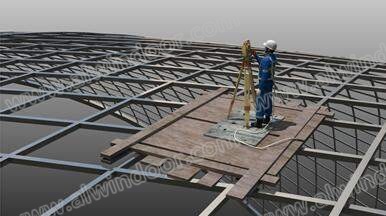 如何保證鋼結構的定位準確至關重要。本工程運用全BIM技術對屋面體系進行建模,測量放線利用BIM模型來復核大鳥形屋面鋼結構,并反饋測量數據至BIM模型并實時修證,依據最終BIM模型進行現場大鳥形屋面測量放線工作,測量時,所有控制點均由BIM模型取出。同時測量數據直接輸入BIM模型進行核對及分析。整個過程通過BIM模型實現數據化控制及管理,以保證本工程的測量定位質量。