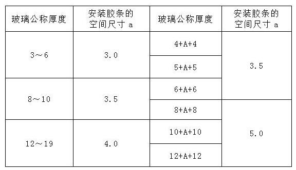 安裝玻璃用密封膠條分為玻璃外側密封膠條(斷面形狀見圖2-1a)和玻璃內側密封膠條(斷面形狀見圖2-1b)。為保證框材與玻璃有效的彈性隔離,安裝膠條的空間尺寸(見圖2-2中a)應滿足表3要求。