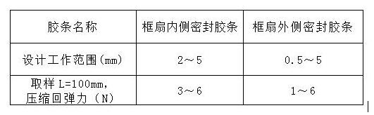 1) 框扇間密封膠條設計工作范圍、回彈力的選擇宜參照表1。
