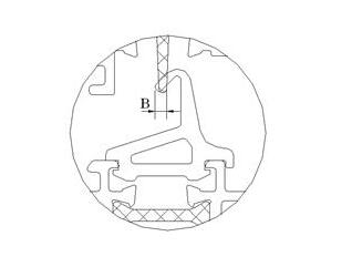 等壓膠條在型材中起到阻斷空氣對流和熱輻射的功能,等壓膠條的選擇設計既要滿足密封要求、又要符合門窗啟閉力的要求。等壓膠條的配合在門窗扇閉合時,B部份變形量不宜過大。