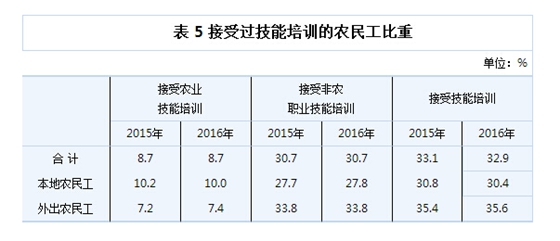 (四)接受過技能培訓(xùn)的農(nóng)民工比重小幅下降