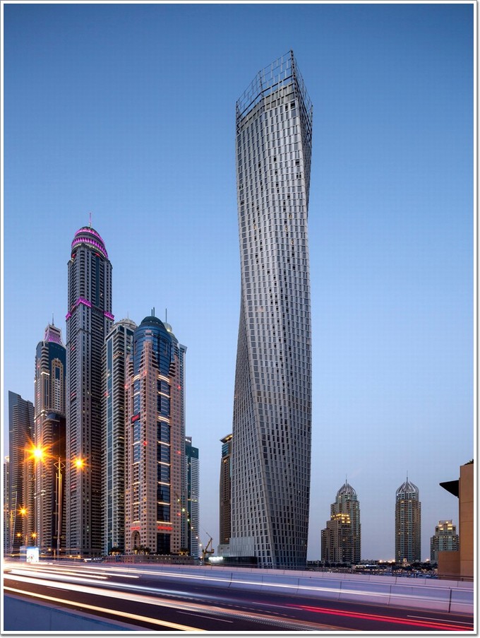 卡延塔于2013年6月10日在迪拜海濱區正式落成,總高310米、共73層。而在此之前,瑞典的“Turning Torso” 扭曲大廈只不過高190米,二者最高點的扭曲角度都是90度。堪稱全世界“最高最擰巴”的大廈。其設計靈感來源于人體DNA的雙螺旋結構, 這座摩天樓的主要構件,將是現場澆注的高強度(詞條“強度”由行業大百科提供)鋼筋混凝土柱,每一層之間都有1.2度的旋轉錯落,從而實現了總體90度轉角的獨特外觀。