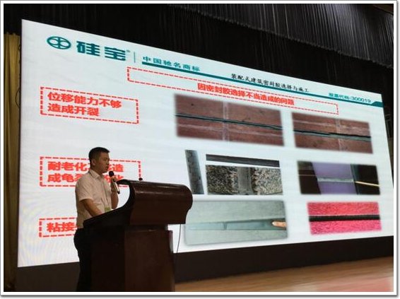 論壇研討環節可謂亮點頻出、思想火花四濺,眾多業界大師展開系列專題講座與深度對談。硅寶科技應用技術總監羅思彬以《裝配式建筑密封膠(詞條“建筑密封膠”由行業大百科提供)與施工》為主題,與國內知名建筑師、設計師、裝配式建筑領域專家及業界精英展開火熱對話,向與會嘉賓全方位、多層次、多角度研討用于裝配式建筑專用密封膠的應用技術,同時介紹了硅寶科技率先在國內進行服務模式創新,為客戶提供專業技術支持、為工程質量保駕護航的“一站式服務”,受到與會嘉賓的熱烈反響和一致好評。此外,與會嘉賓們紛紛蒞臨硅寶科技展位,詳細詢問硅寶裝配式建筑專用密封膠的優異性能及應用領域,并對硅寶產品的優異表現予以高度認可。