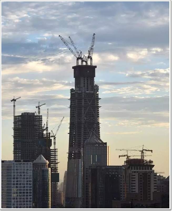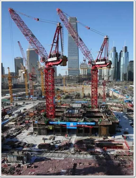 ▲2014年12月10日,中國尊項目地下結構沖出地平面,實現全面封頂,并開始上部工程施工