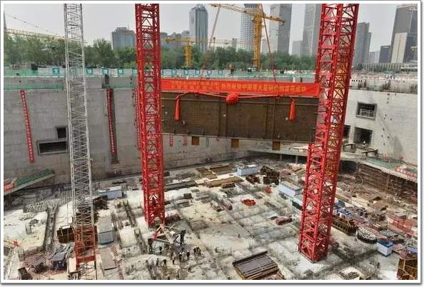 ▲2014年4月27日,中國尊大廈的超厚大體積基礎底板混凝土澆筑正式完成
