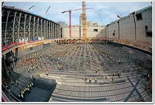 3、世界最大截面的多腔體鋼管混凝土巨型柱——64平方米;