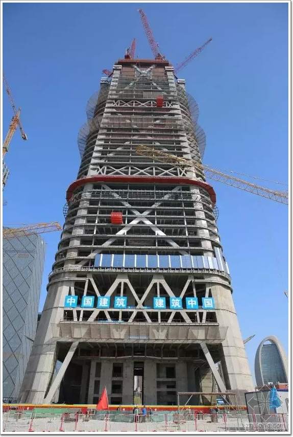 2015年10月27日,巨柱及外框全部施工安裝完成,鋼結構施工沖出地面;