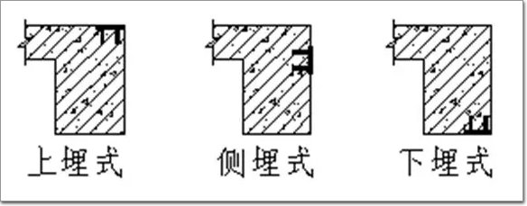 埋件按其在主體結(jié)構(gòu)上的位置劃分,可分為上埋式、側(cè)埋式和下埋式,其中下埋式受力較為不利,應(yīng)謹慎使用。