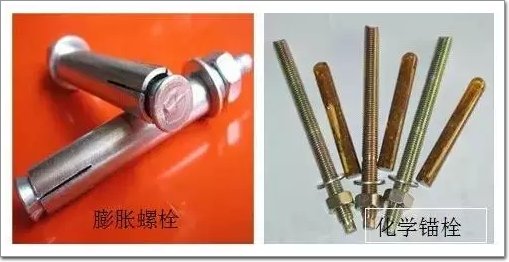 1. 后錨固件有膨脹型螺栓、擴孔型螺栓、化學(xué)植筋及其它類型螺栓。