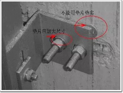 出現(xiàn)預(yù)埋件偏離時,可以加大(或加長)預(yù)埋錨板方法補救。加長錨板后使用化螺栓固定 。
