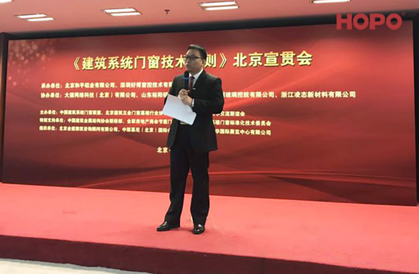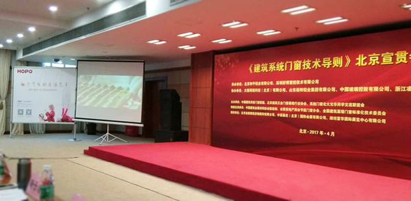 2017年4月28日上午9時,由中國建筑系統門窗聯盟、系統門窗北大光華同學交流聯誼會主辦,HOPO好博窗控、北京和平鋁業承辦的中國《建筑系統門窗技術導則》北京宣貫會在北京中工大廈隆重開幕。主協辦單位領導、演講嘉賓、參編單位專家、行業協會領導、門窗企業管理層、行業人士以及主流媒體和行業媒體等數百觀眾蒞臨現場。