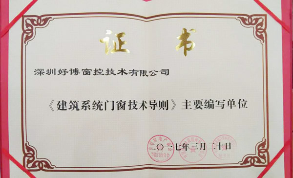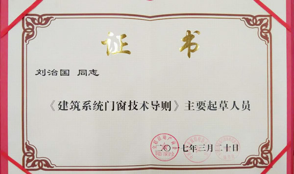 頒發中國《建筑系統門窗技術導則》參編單位證書