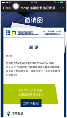 為了感謝廣大預(yù)登記觀眾對博覽會的大力支持,F(xiàn)ENESTRATION BAU China 2017博覽會特推出更為多樣化,參與性更強的預(yù)登記贏大獎活動。即預(yù)登記“全民參與、全民獎勵”政策——只要您做了預(yù)登記并邀請行業(yè)人士一同參與,即有機會獲得組委會提供的豐厚獎品;且本年度預(yù)登記贏大獎活動還將在每月推出主題專享活動,為廣大預(yù)登記觀眾送出更多中獎福利,最高獎項可達萬元,讓您拿獎拿到手軟!